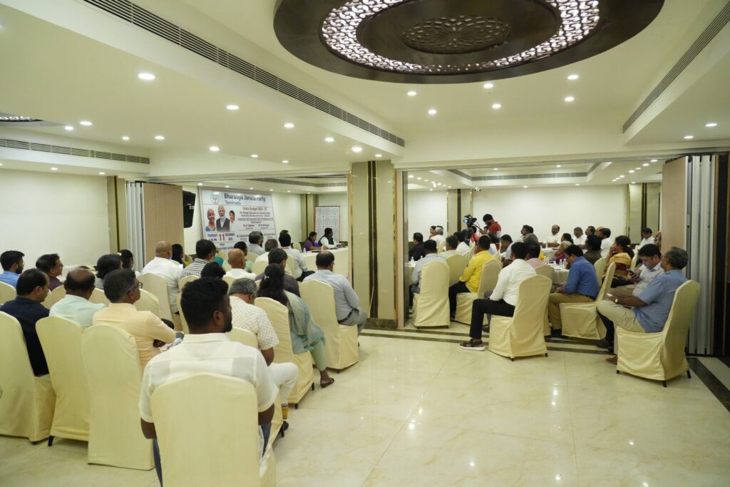 11-12-2025,வியாழக்கிழமை மாலை 6 மணிக்கு தொழில்துறை வல்லுநர்கள், பொருளாதார நிபுணர்கள் மற்றும் ஆடிட்டர்கள் அவர்களை ஒருங்கிணைத்து பட்ஜெட்டிற்கு முந்தைய கலந்தாய்வு கூட்டம் பாரதிய ஜனதா கட்சியின் பொருளாதாரப் பிரிவு, தொழில் பிரிவு மற்றும் தொழில்துறை வல்லுநர்கள் பிரிவு ஆகிய மூன்று பிரிவுகளும் இணைந்து நடத்தியது.